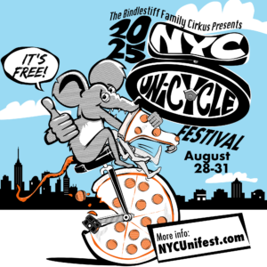 Produced by Bindlestiff Family Variety Arts, Inc., the New York City Unicycle Festival brings together recreational riders, world-class performers, mountain and off-road unicycle enthusiasts, mono—wheel vehicle inventors, and thousands of people who have not ridden in umpteen years, along with circus enthusiasts, extreme sports viewers, and anyone seeking an unusual sight –even for NYC!